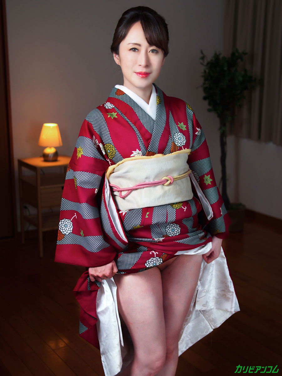 しっとりとした和服がぴったりの美熟女。しっとりとした姿で艶技を楽しんでもらいたかったのなら、フェラ抜きは最初だけにして、2発目は昆布巻きで中出ししたかった。でも、ふくよかな美ボディは全裸になってこそ。丁寧に咥えられたら、たちまち元気になる。劣化の少ないマンコへの放出は映える。